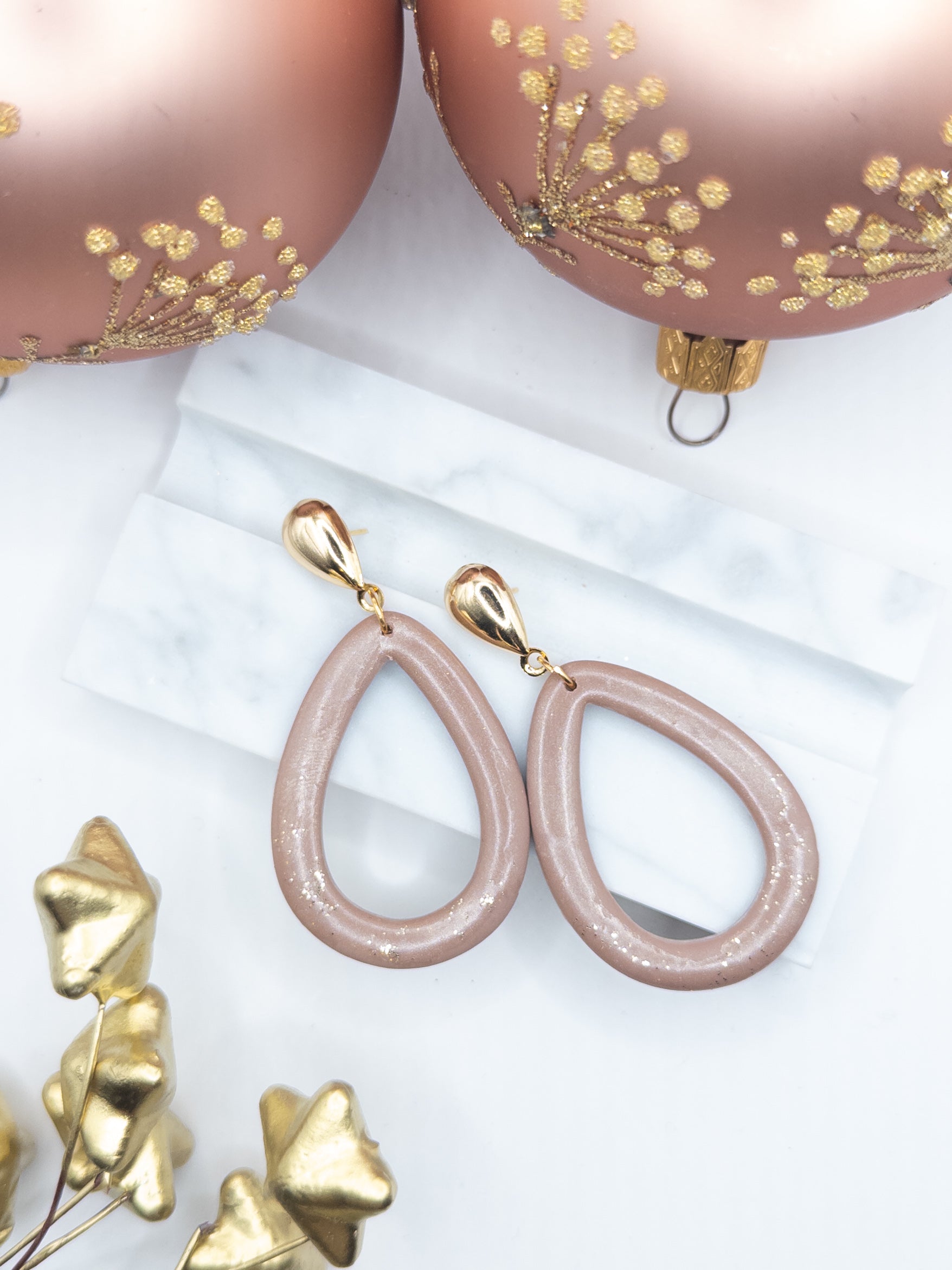Prachtige oorbellen met glans en subtiele glitter. De oorbellen zijn 6 cm.