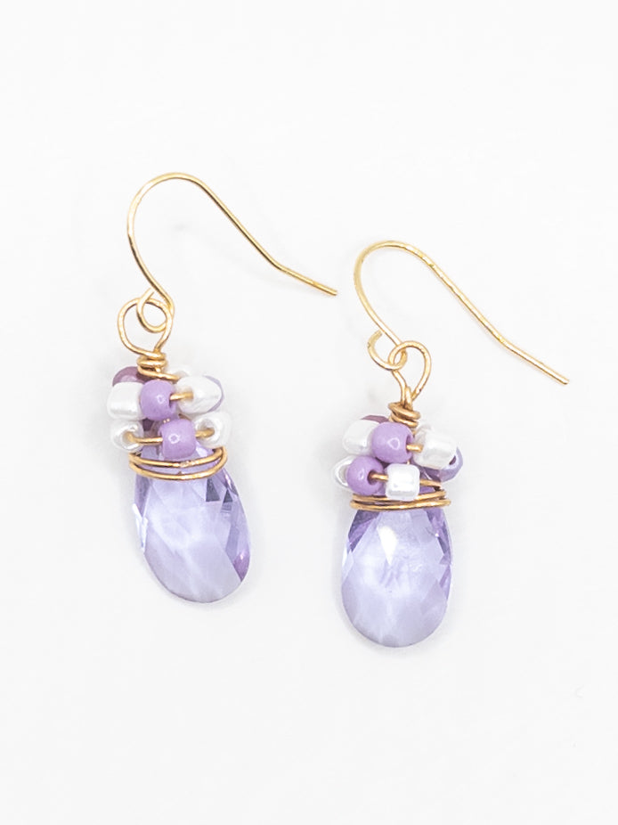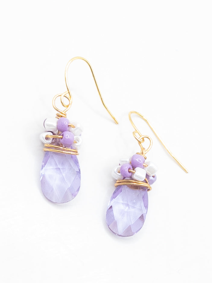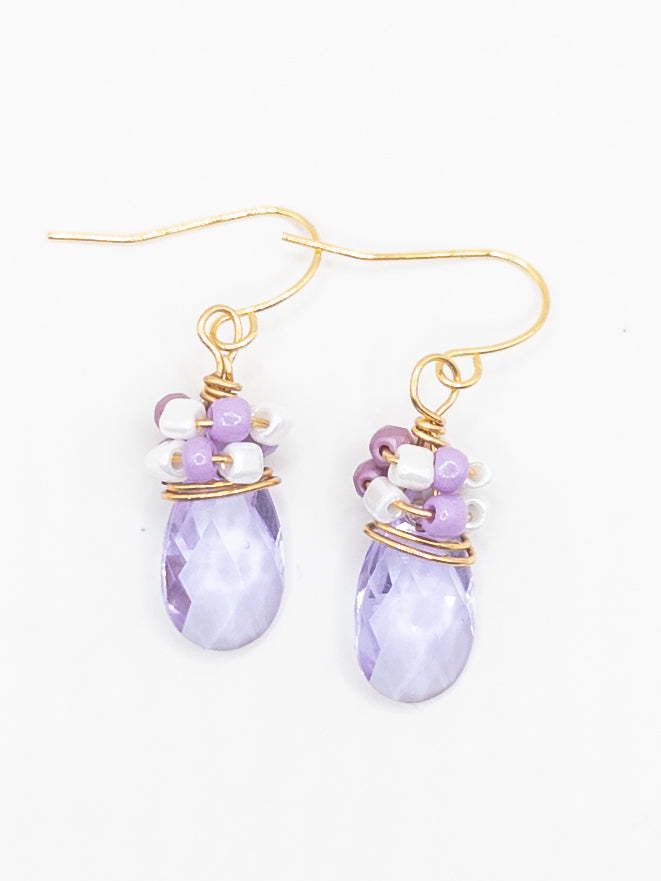 Oorbellen Lila druppels wit goud lila