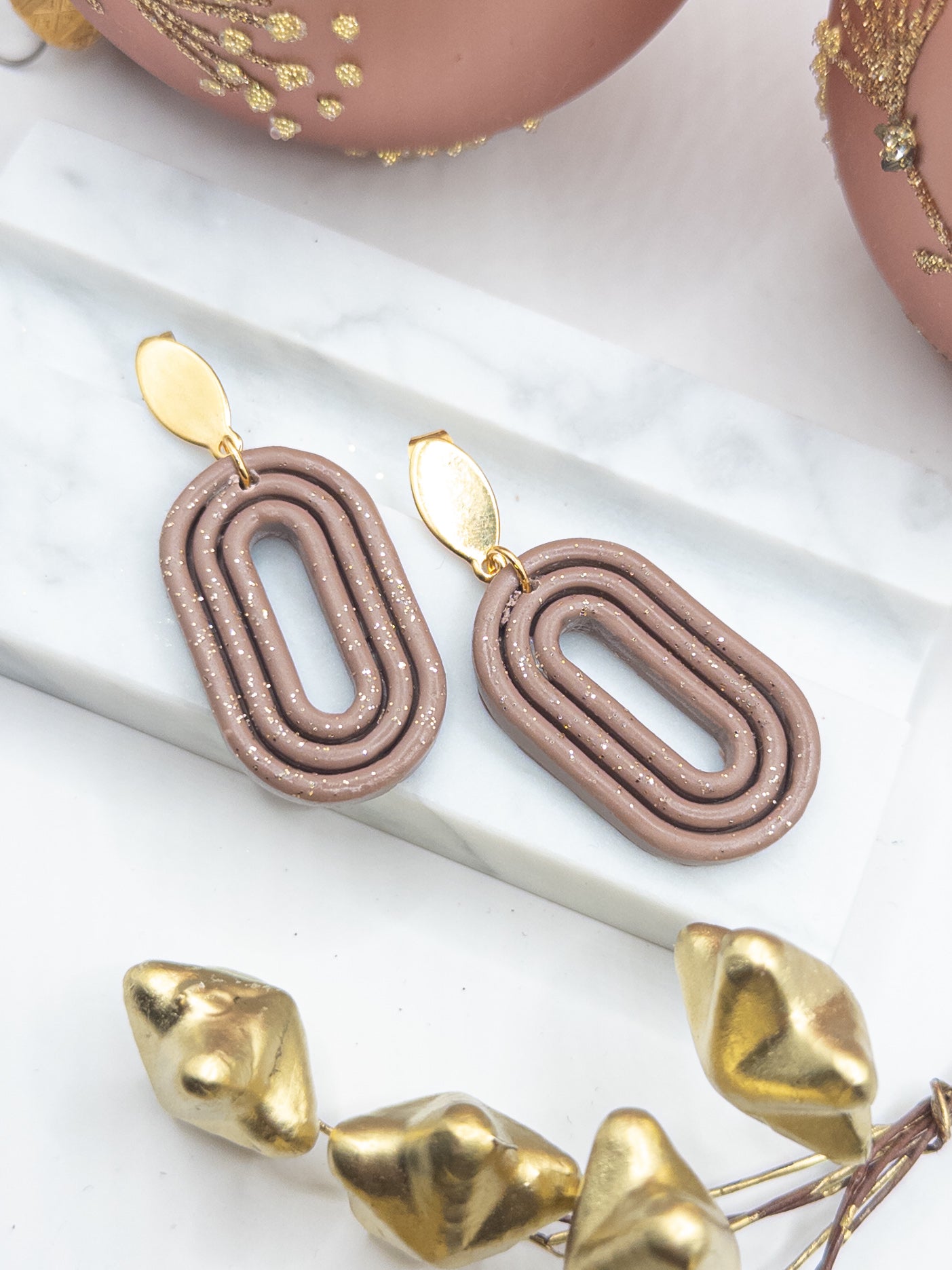 Oorbellen Oval taupe glitter