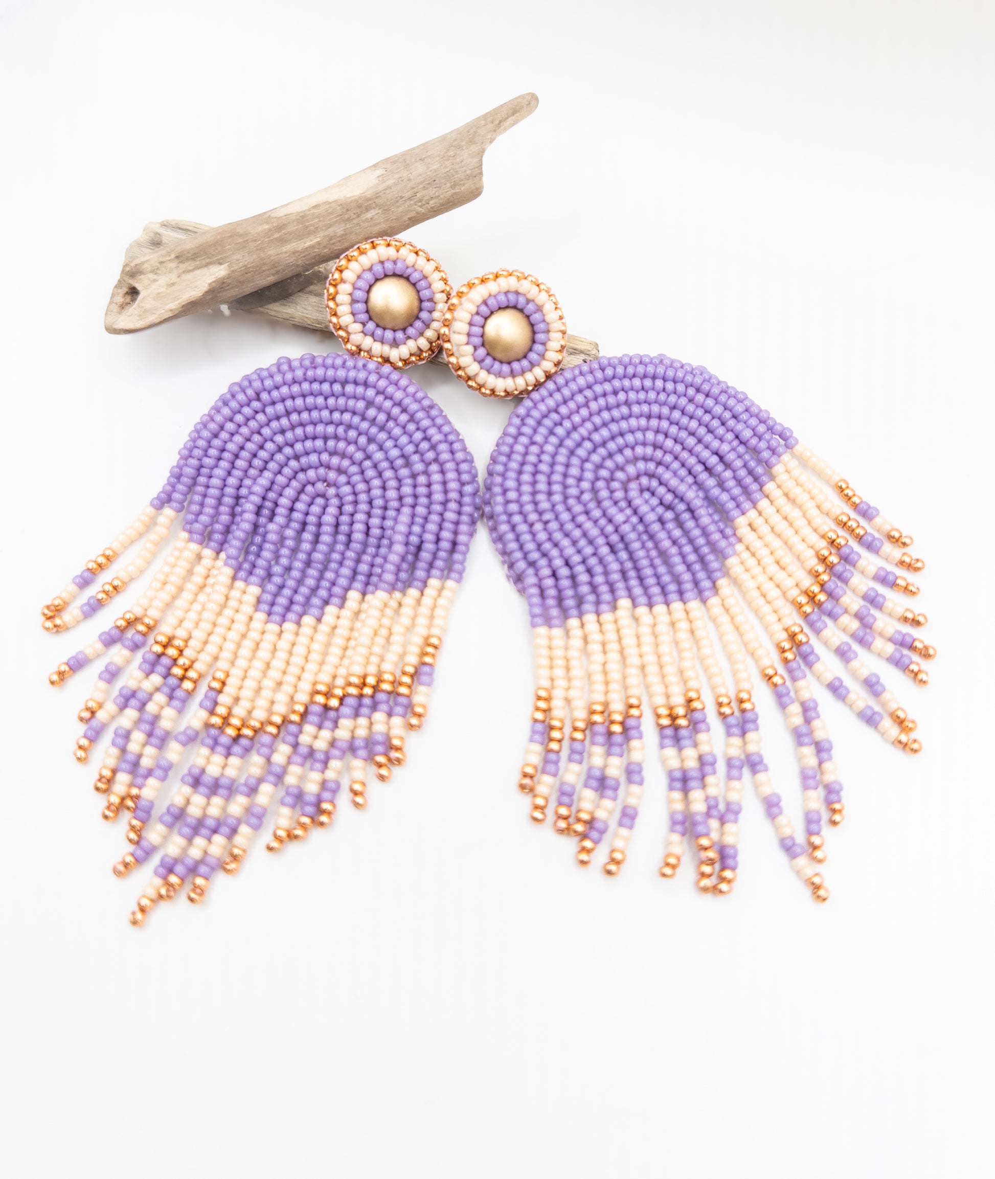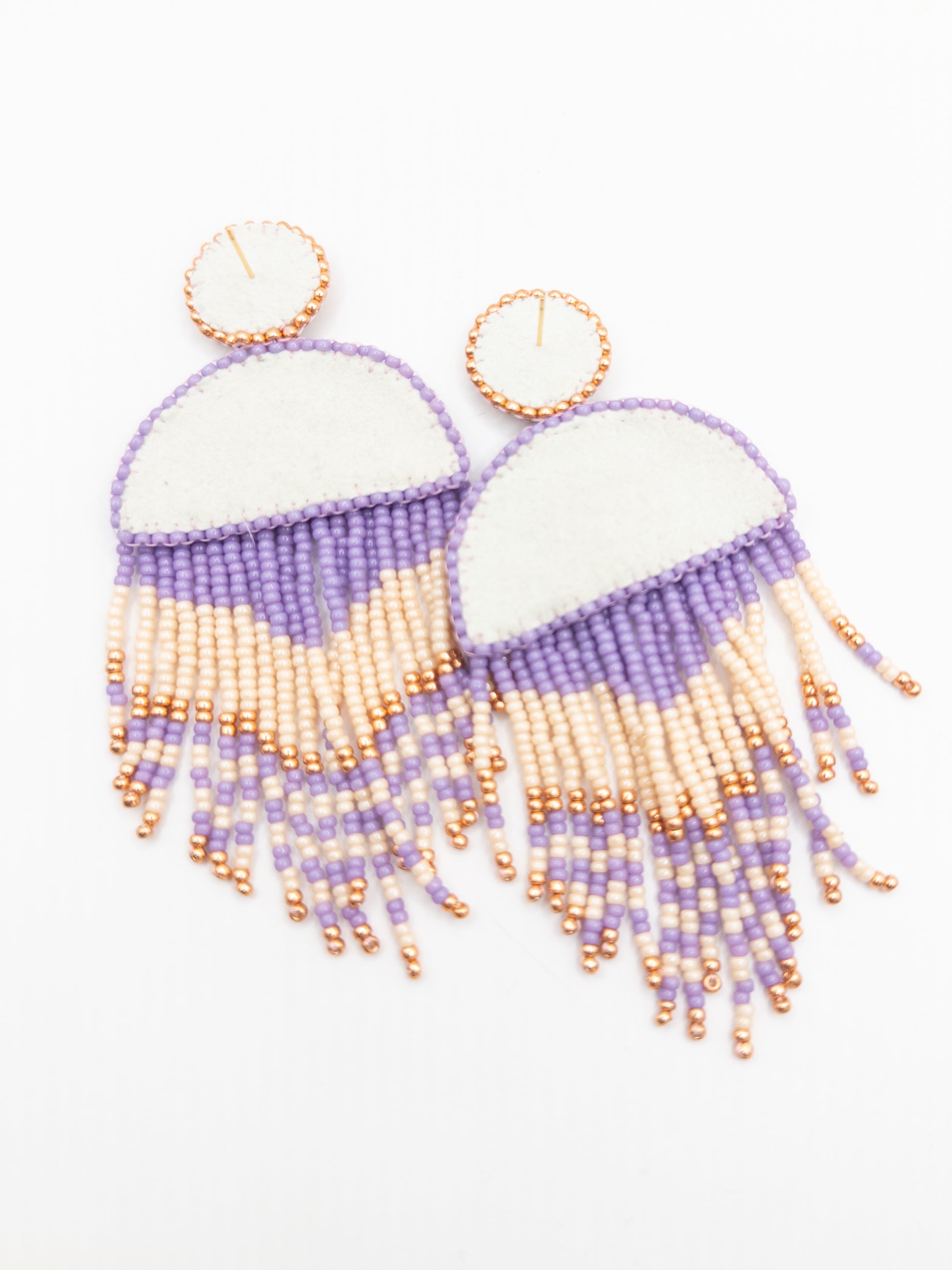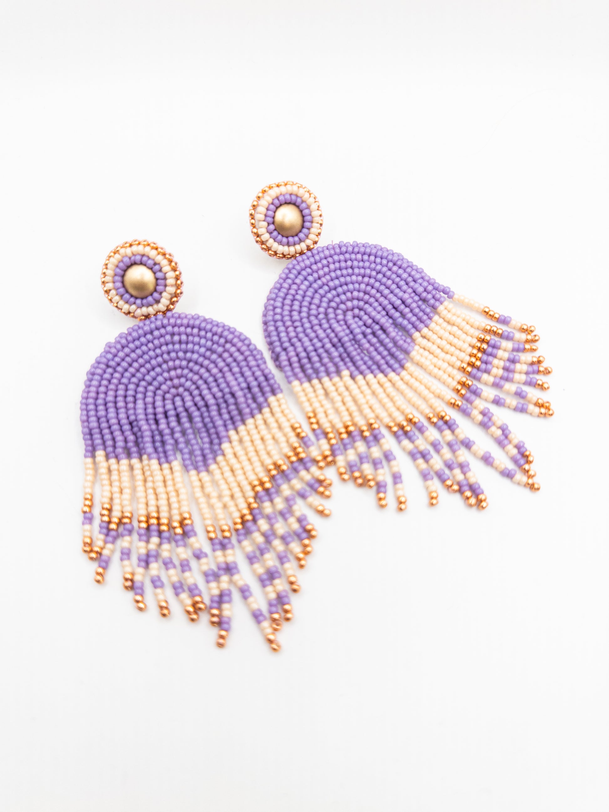 Statement oorbellen lila goud off white